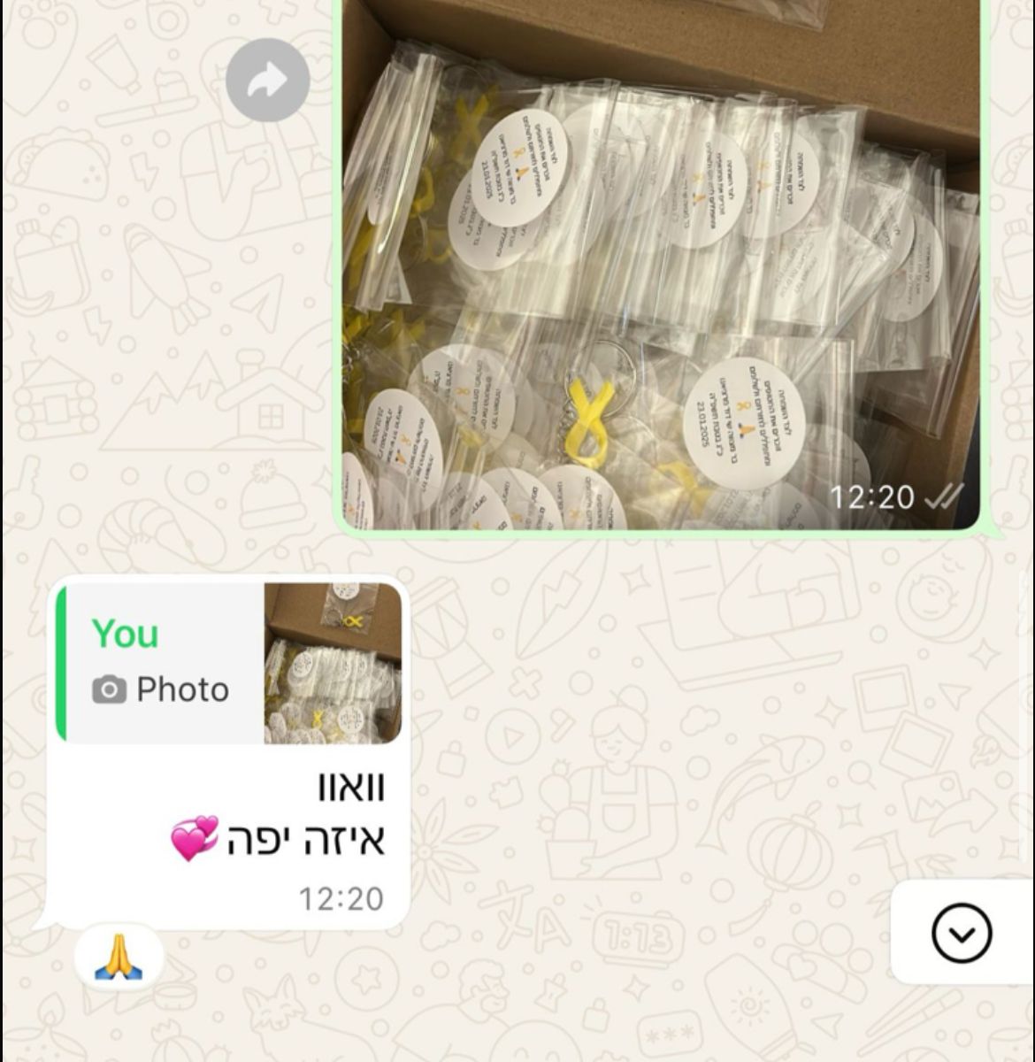 הלקוחה בחרה מוצר מתוך הקולקציה שלנו באתר, ואנחנו דאגנו לכל השאר – מהכנה מדויקת של ההדפסה ועד לאריזה מוקפדת. כדי להפוך את ההזמנה למיוחדת באמת, הוספנו גם מדבקות בעיצוב אישי שהותאמו במיוחד עבורה והודבקו על גבי האריזה. כי גם בפרטים הקטנים – אנחנו פה כדי לרגש.